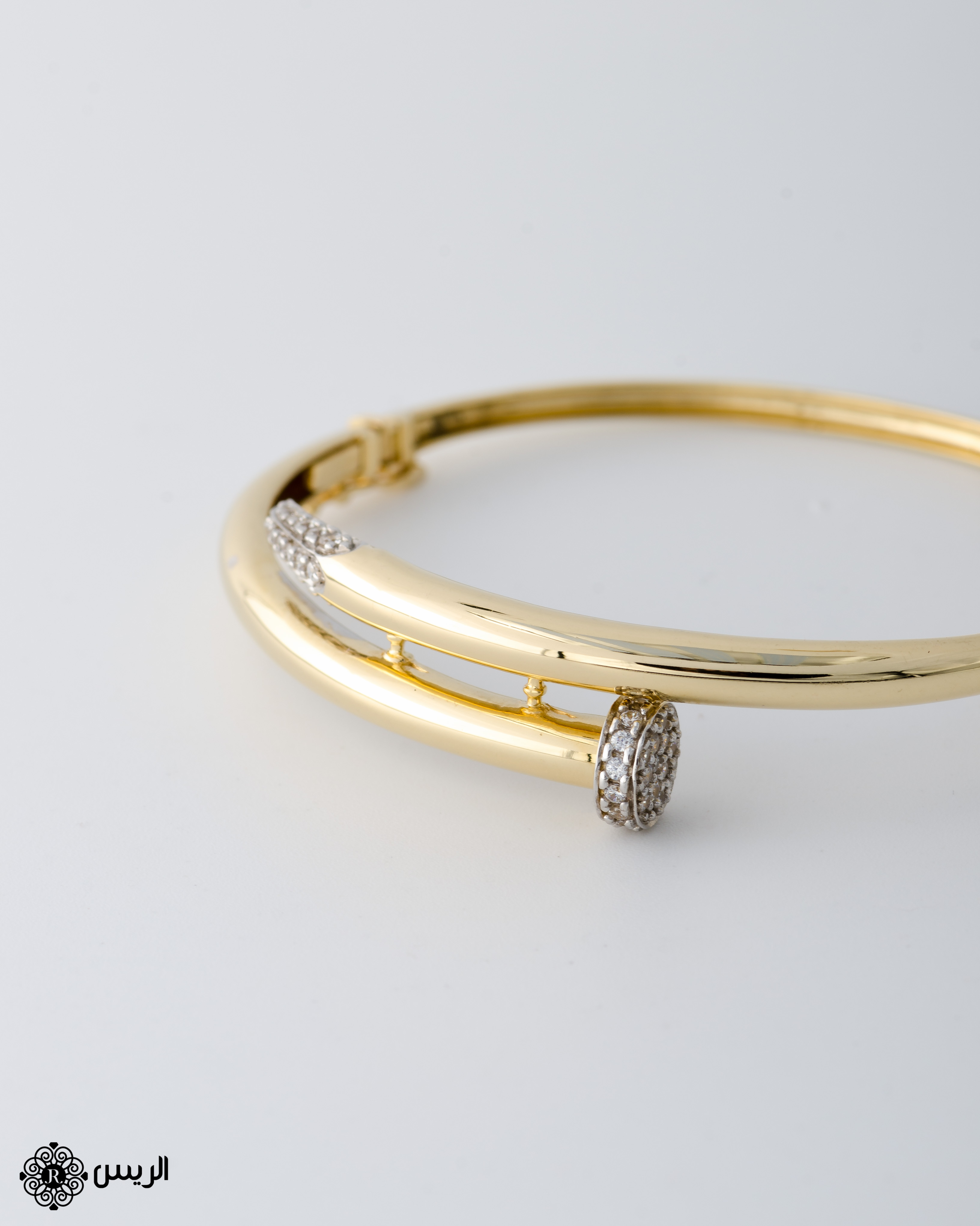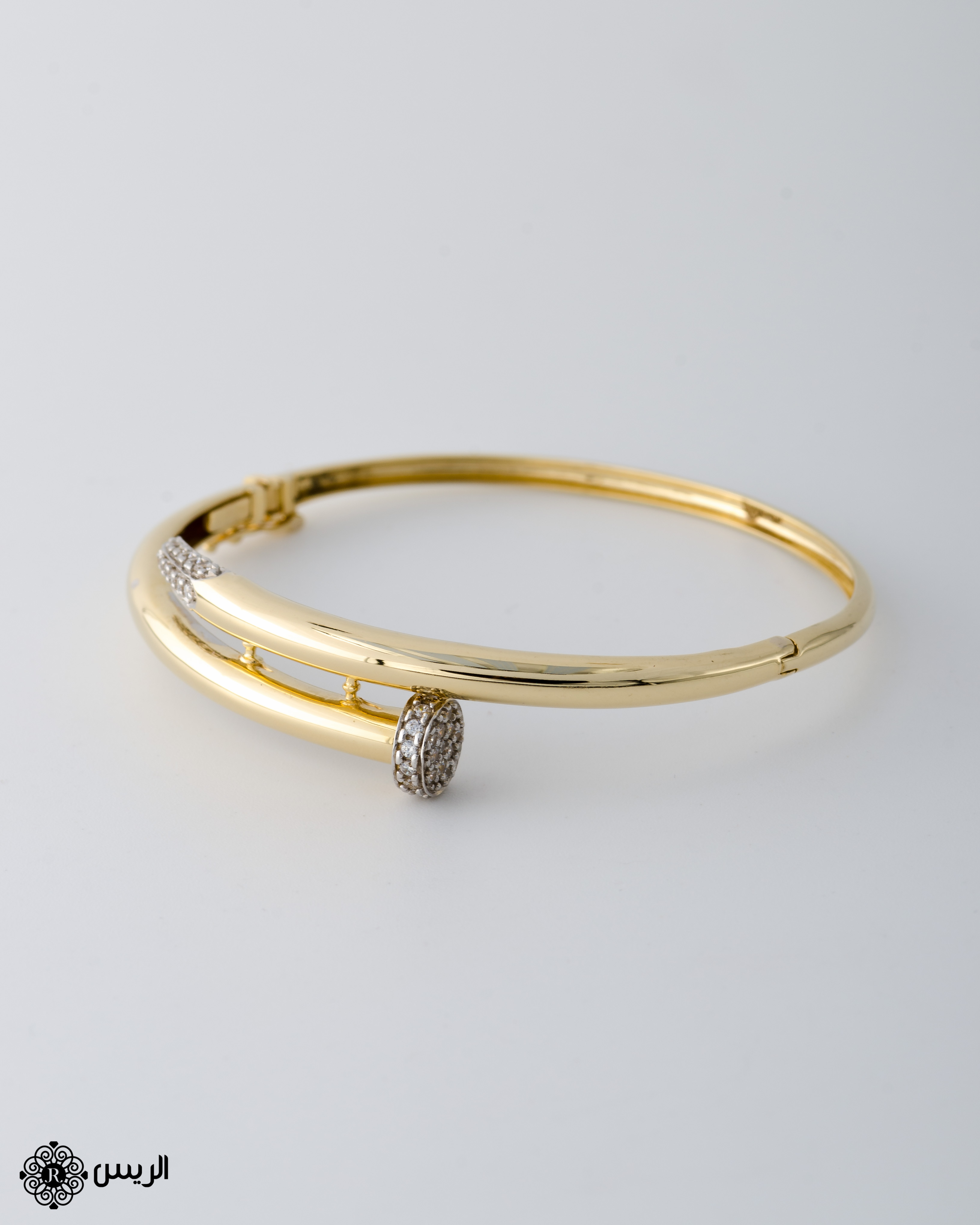 إسورة مسمار تصميم سبور بفصوص زركون لون أبيض.
